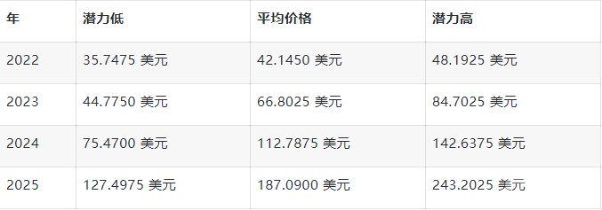 如果 Solana 鼓励新兴的初创公司,它可能会成为市场上其他货币的新竞争对手。此外,在未来几年,如果 Solana 的发展速度超过了以太坊,它可能会达到很高的水平。在这一点上,SOL 价格可能会达到 243.2025 美元的最高价。 未来的新法规可能会影响价格走势,因此 SOL 可能会出现低点。如果发生这种情况,到2025 年底,小幅回调可能会将 Solana 拉至127.4975 美元。考虑到看涨和看跌的目标,平均价格可能会跌至 187.0900 美元。