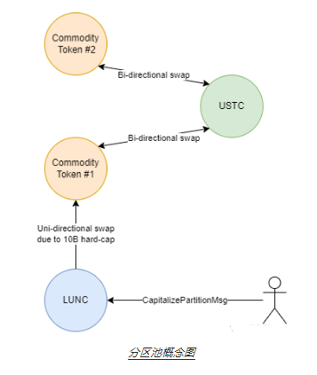 实际上LUNC到CT的兑换是我们推测的内容,文章提到:As such “partitioned pools” would always start with an initial supply of zero and they would be “shielded” in such a way that they could only be capitalized via the native governance token (LUNC) representing a debt-to-equity swap of sorts between the governing community and the private business seeking to “setup shop” on our network.