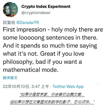 与其说是提案,这个文章更多的是阐述概念,和前几天发布的增发LUNC的re-peg提案差别还是很大的,全文充满各种学科的黑话,却很少数据和数学论证,以至于有吃瓜群众说这是一篇“哲学文章”。