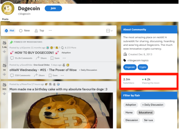 狗狗币Reddit社区,目前粉丝数为230万