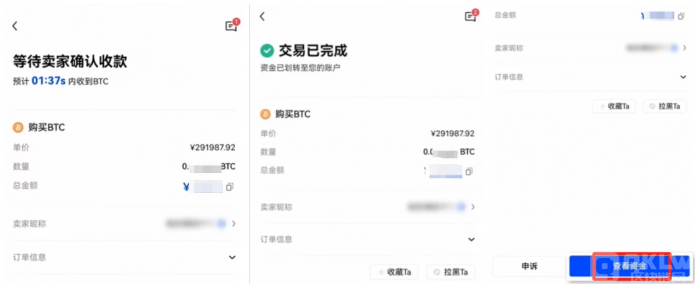 卖家确认收款并放币后,即成功买入一笔数字资产,您可点击“查看资金”按钮查看您的资产。